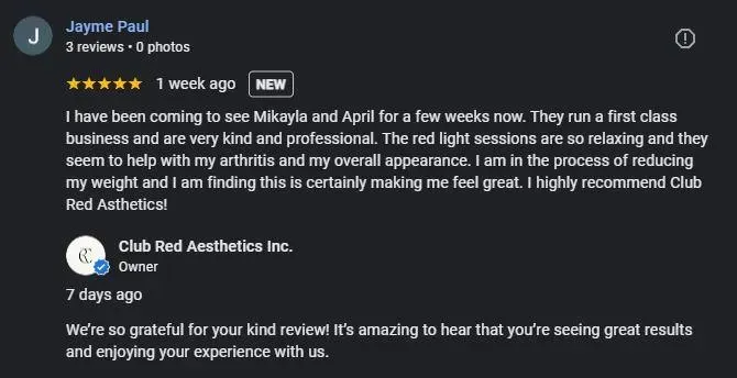 Most clients experience 2+ inches lost from the very first session. Continued visits will result in greater results and are recommended for those looking for a larger transformation.